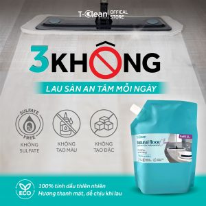 Nước lau sàn thiên nhiên T-Clean 2L – 3 KHÔNG (không sulfate – không tạo màu – không tạo đặc), 100% tinh dầu thiên nhiên.