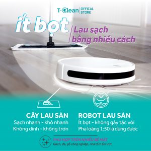 Khác với đa số nước lau sàn trong nước chỉ dùng cho cây lau, T-Clean được thiết kế để sử dụng cho cả robot lau sàn khi pha loãng đúng tỷ lệ, ít bọt và không gây tắc vòi phun.