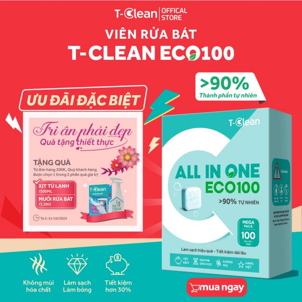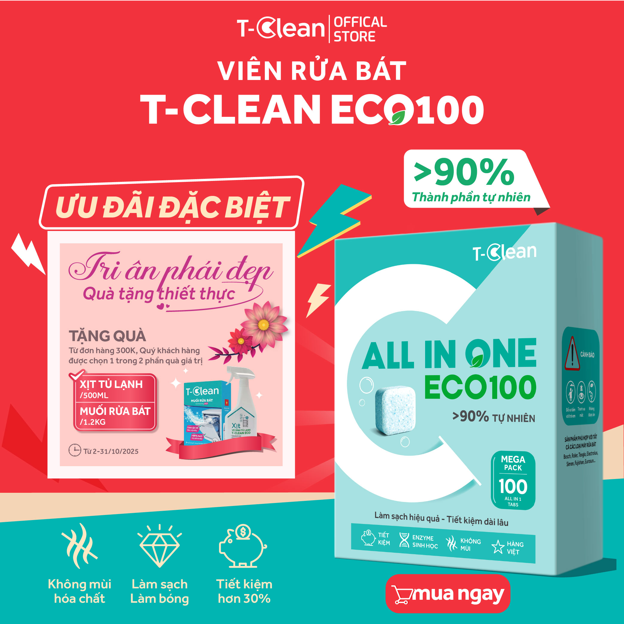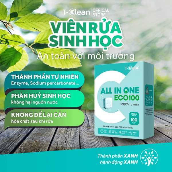 Tên sản phẩm: Viên rửa bát T-Clean All in One Eco100